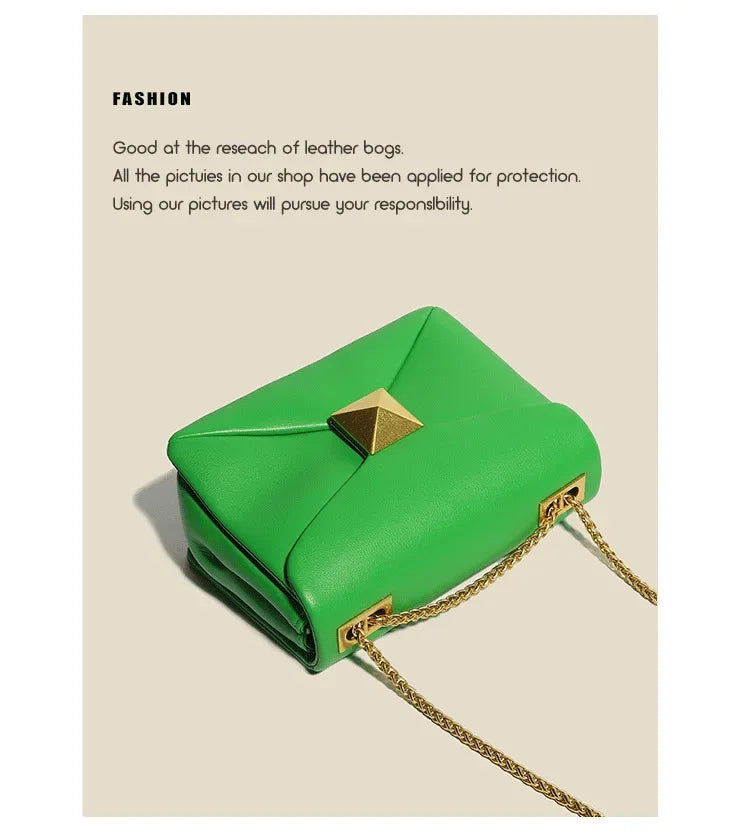 Early Spring Korean Style Cropped Studded Niche Chain Bag 2024 New Trendy Versatile Handbag Genuine Leather Small Square Bag