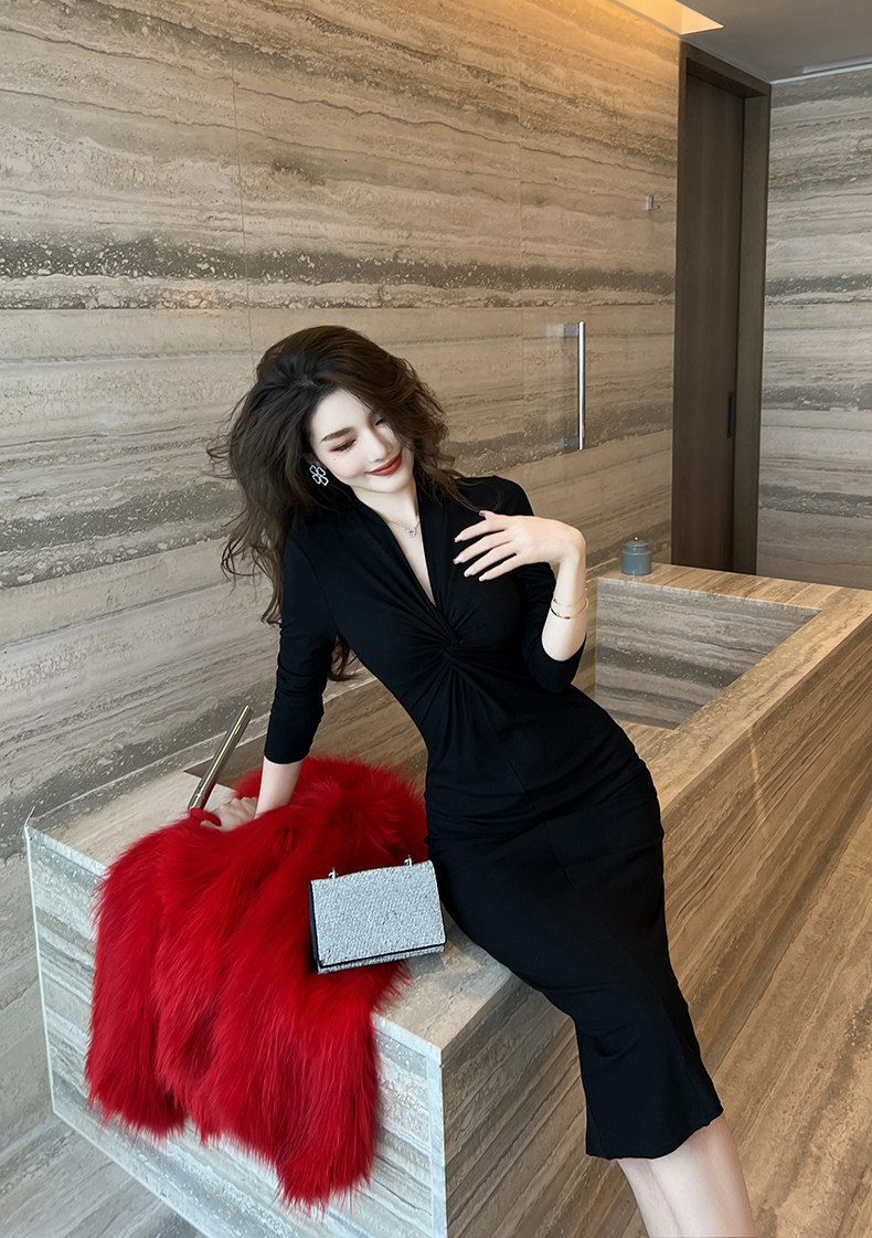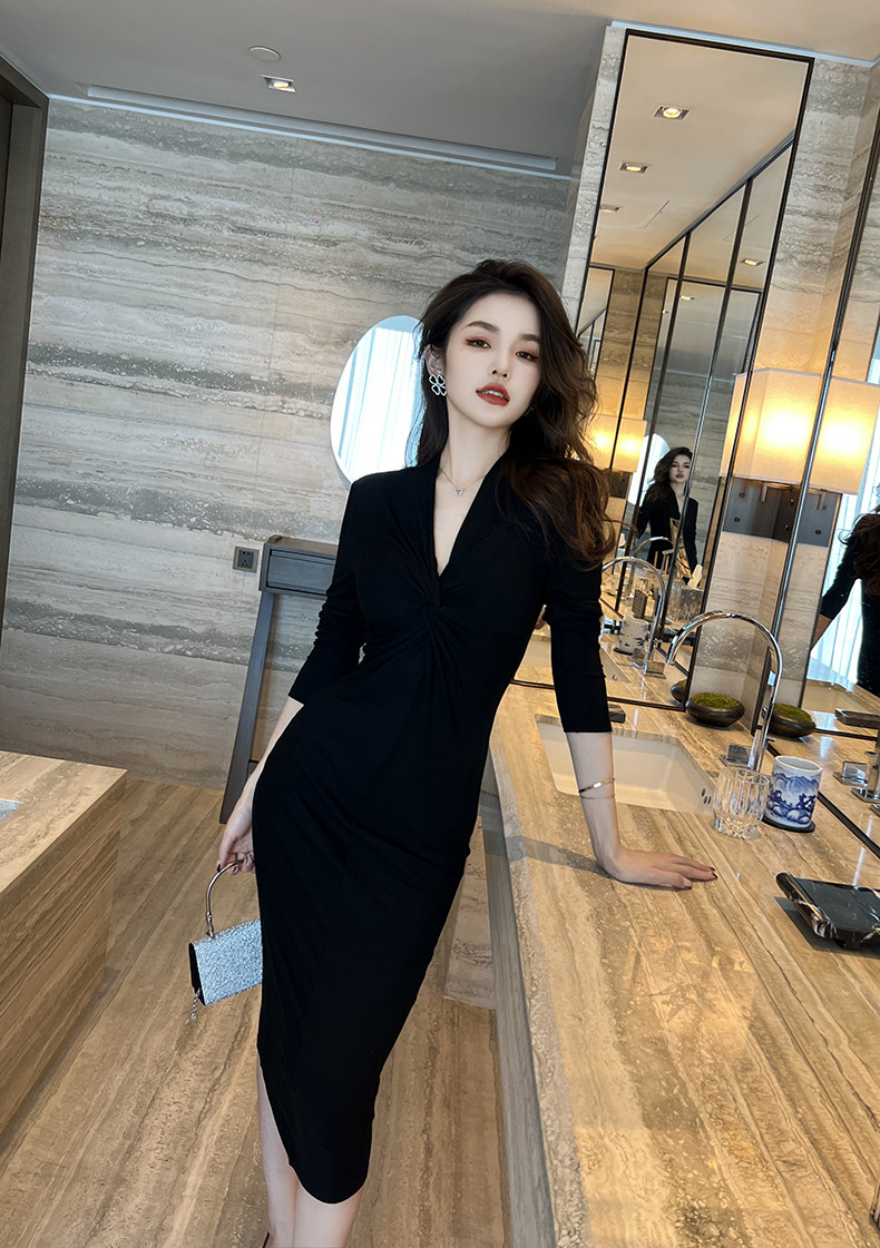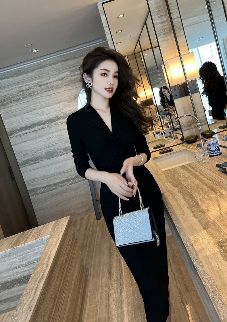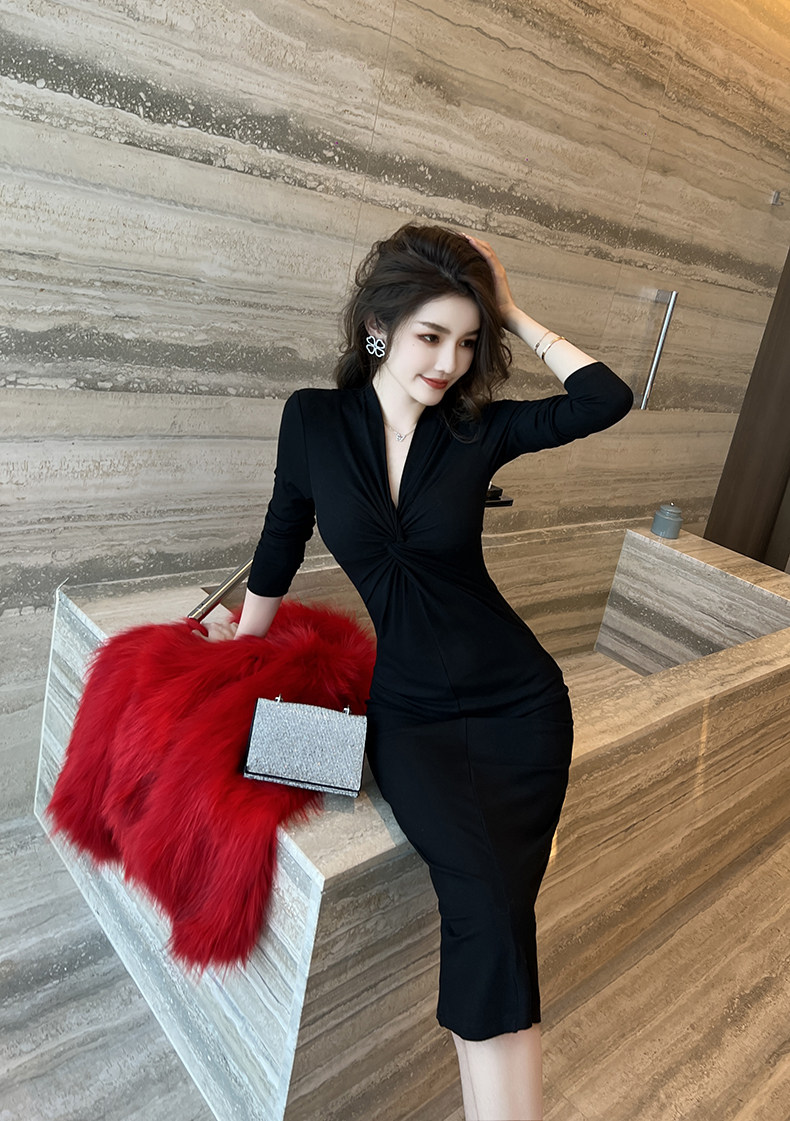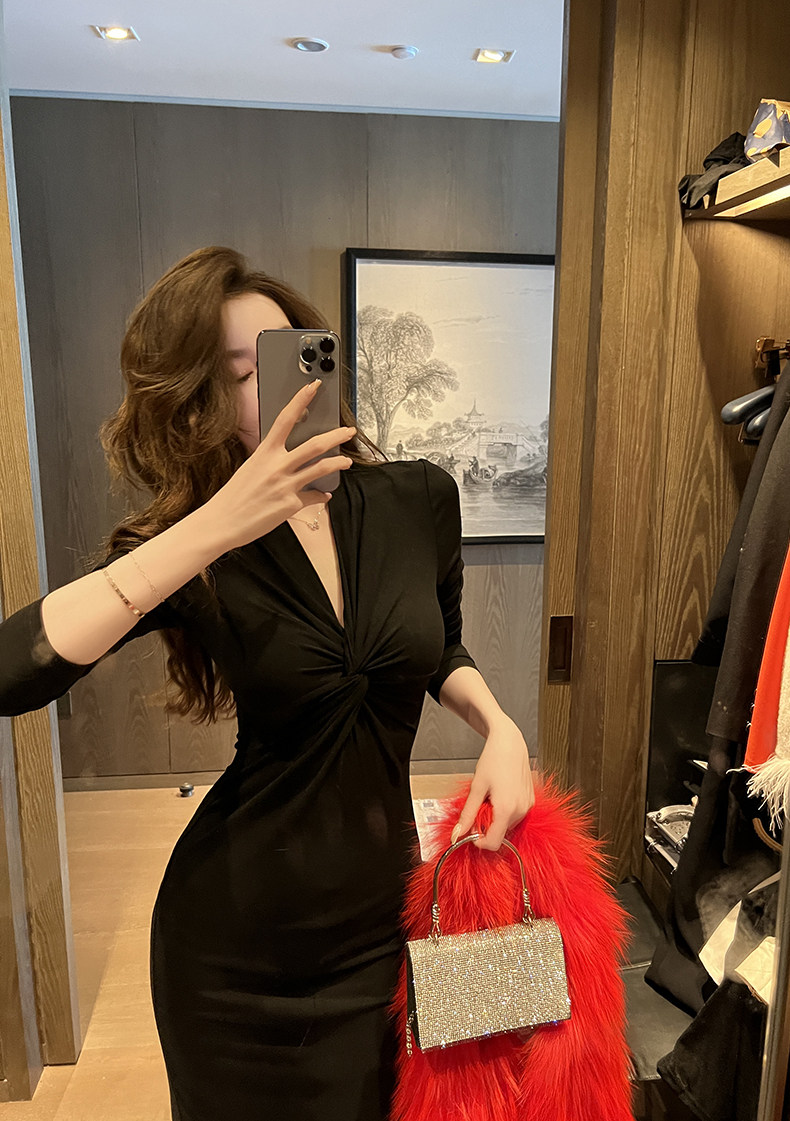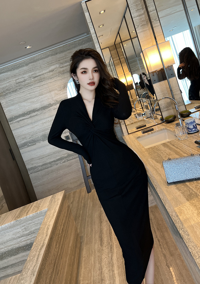 French-Style Hepburn-Inspired Black Dress for Women, Autumn and Winter 2025 New Model, Sexy Slim-Fitting Inner Dress, Bodycon Skirt