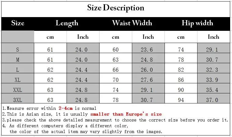 * Notice! Pls refer the above size table before you order. If you need help, pls feel free to contact us.