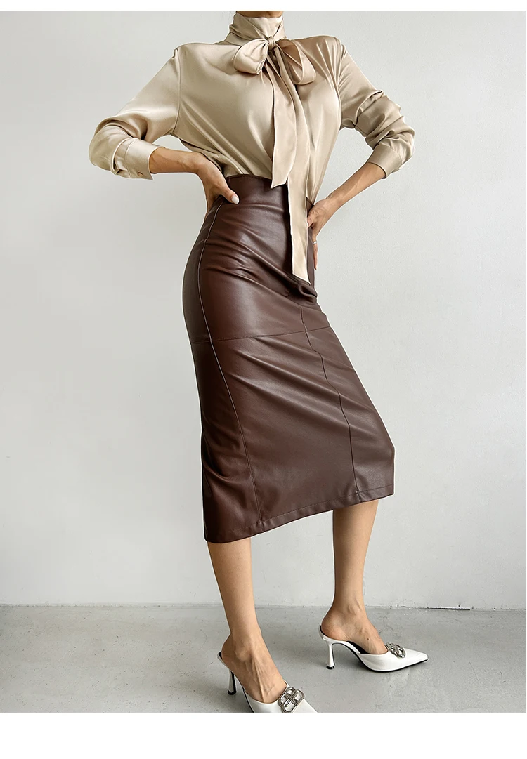 New Fashion Pu Leather Skirt Women Fashion Autumn High Waist Slim Split Wrapped Hip Pencil Skirts Elegant Office Lady Jupe