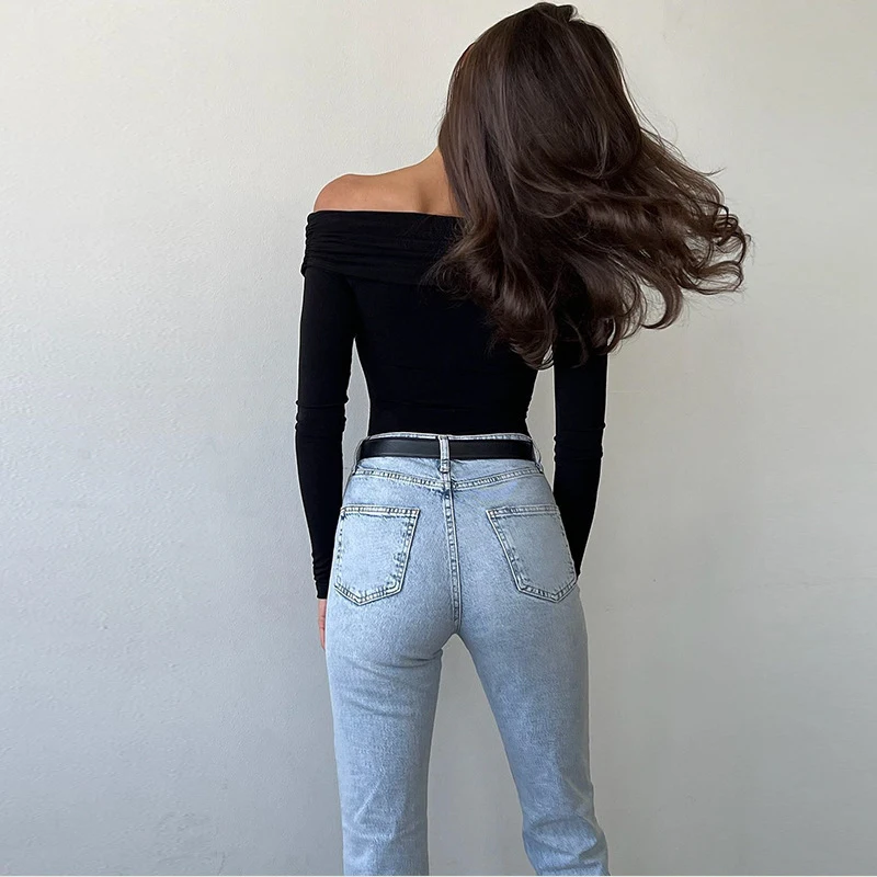 Sexy Bodysuits Women Fashion Black Crossed Folds Slim Rompers Long Sleeve Fashion Corset Casual Streetwear New Autumn Bodysuits
