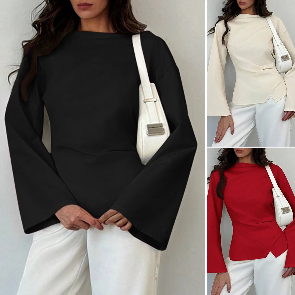 Women's Blouses Summer Fashion Slim Elegant 2025 Plain Minimalism Long Sleeve Round-Neck Office Lady Blouses