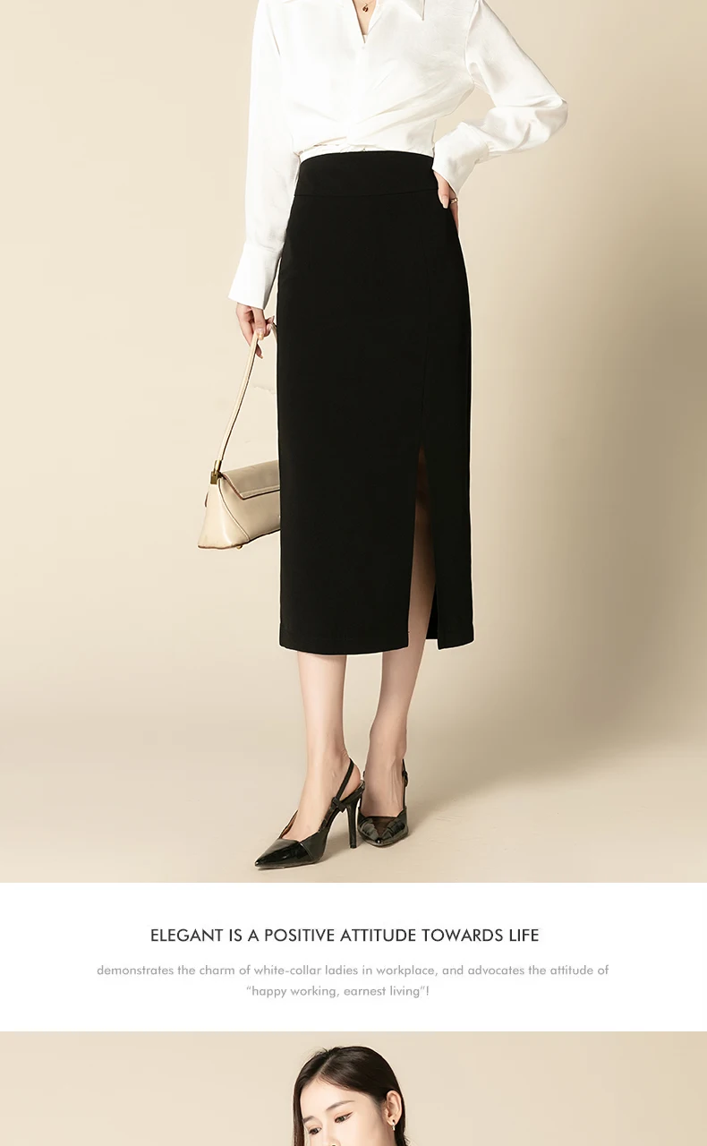 ZUZK Slit Hem Bodycon Skirt Women Elegant  High Waist Slim Skirt Spring Autumn Office Lady Mid-long Work Pencil Skirt